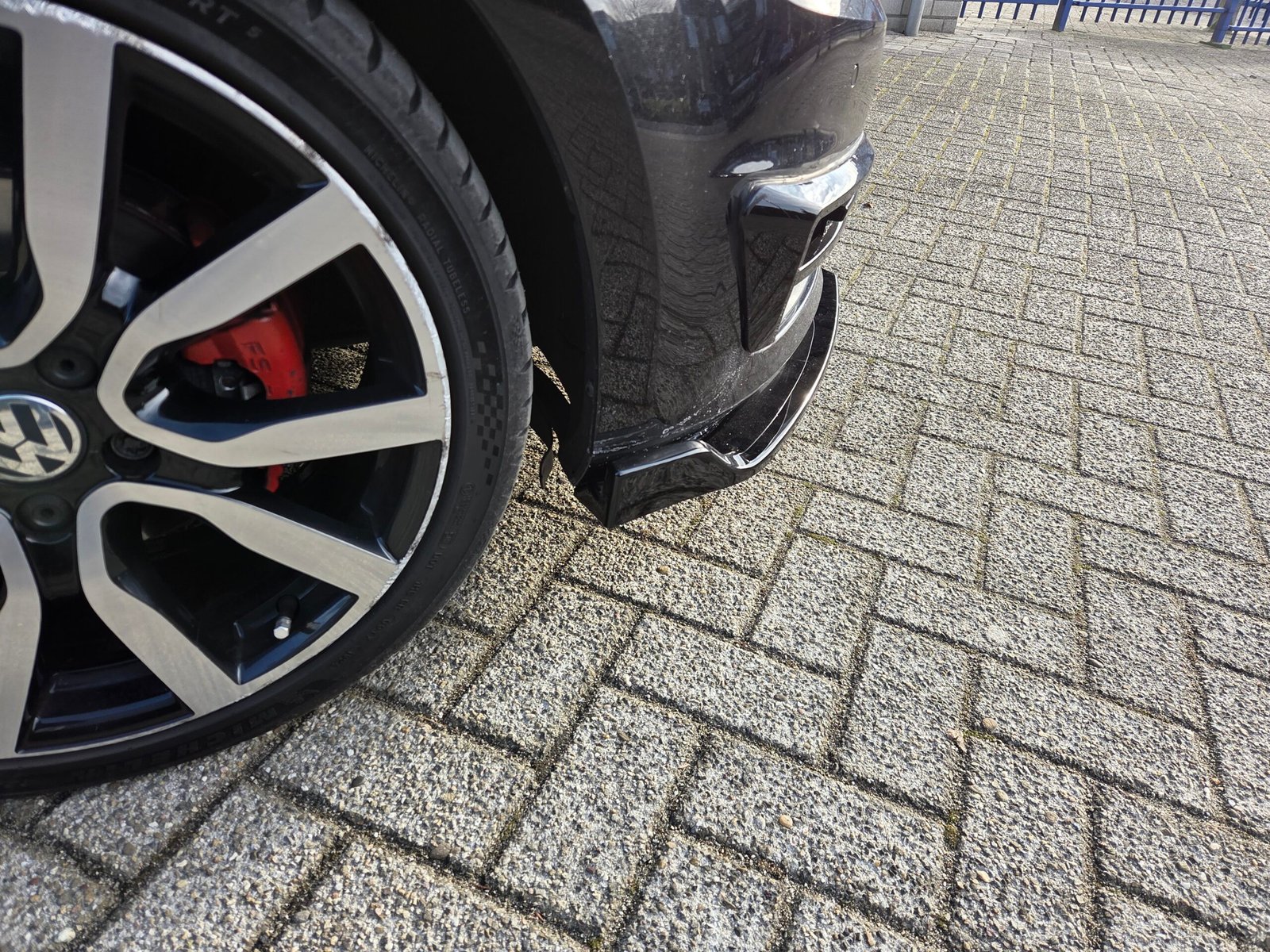 - De splitter is hoogglans zwart